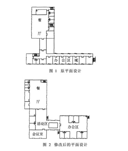 為了有效利用自然通風,在建筑布局時應(yīng)使建筑物面向夏季夜間風向;房間進深不宜過大,一般情況下平面進深不超過樓層凈高的5倍;建筑物的門窗開 口位置及走道的布置、建筑開口和內(nèi)部隔斷的設(shè)置等都要起到對氣流的引導作用,這樣有利于穿堂風的形成。同時應(yīng)將通風設(shè)計、光照設(shè)計及供暖/降溫結(jié)合起來考 慮,在可能的情況下充分利用水面、植物來降溫。以上海軌道交通1號線富錦路停車場綜合辦公樓二樓平面圖(見圖1)為例,通過對門、窗及內(nèi)部隔斷等的布置稍作修改,在不改變建筑使用面積的情況下形成穿堂風,大大提高了建筑的通風效果(見圖2);同時利用玻璃中庭的拔風效應(yīng),促進自然通風(見圖3)。