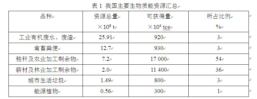 表1 我國主要生物質(zhì)能資源匯總