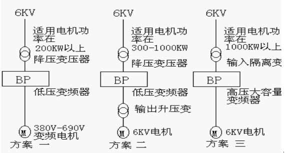 依托華能自動化工程公司在華能新華、榆社電廠實施高壓大容量變頻節(jié)能改造專項支持,探索高壓大容量變頻調(diào)速系統(tǒng)的應(yīng)用。形成高壓電機變頻調(diào)速三種方案。
