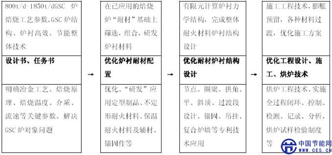 通過優(yōu)化爐襯結(jié)構(gòu)設(shè)計、優(yōu)化施工、烘爐、初投運工程化技術(shù)及爐襯維護修理技術(shù),實現(xiàn)節(jié)能、減排、降耗、高產(chǎn)的焙燒目標。