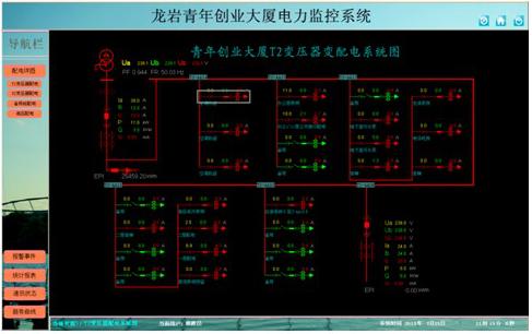 2.2 網絡設計電力監(jiān)控系統(tǒng)中的網絡系統(tǒng)能夠及時的對數(shù)據(jù)進行傳輸,并迅速傳遞操作指令,是實現(xiàn)電力監(jiān)控系統(tǒng)各項功能的基礎。對于福建龍巖青年大廈電力監(jiān)控系統(tǒng)來說,系統(tǒng)中監(jiān)控設備相對較少,而且大多集中分布于一個配電時內,此時,可以先把每個設備就地與總線連接,之后在把各條總線全部接入通訊網關,來實現(xiàn)與主機的傳遞。 2.3監(jiān)控系統(tǒng)軟件功能設計系統(tǒng)依據(jù)客戶實際需求進行設計,并實現(xiàn)了一次主接線圖界面顯示;電參量遙測及電參量越限報警;事件記錄;系統(tǒng)運行異常監(jiān)測;故障報警及操作記錄;報表查詢與打印;系統(tǒng)負荷實時、歷史曲線,用戶權限管理等主要功能。