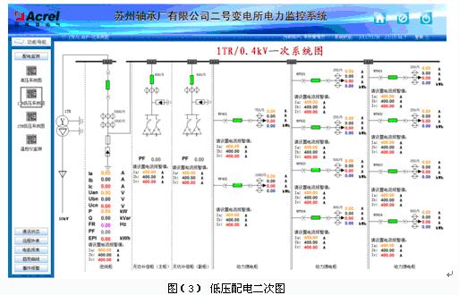 五、智能電力監(jiān)控的功能與應(yīng)用蘇州某金屬制品廠電能管理系統(tǒng)的配電系統(tǒng),10/0.4kV配電系統(tǒng)進(jìn)行用電監(jiān)測與電能管理;監(jiān)測范圍為新建變電所的T1、T2變壓器進(jìn)線柜,聯(lián)絡(luò)柜,溫控儀,高壓側(cè)儀表及綜保進(jìn)行遠(yuǎn)程實(shí)時(shí)監(jiān)控和電能管理。該系統(tǒng)總計(jì)有31只儀表(其中包括26只智能電測儀表ACR220EL,3只中壓保護(hù)裝置AM5,2只溫控儀WHD),分3條總線,都是直接通過屏蔽雙絞線走管道拉至值班室連接到主機(jī)擴(kuò)展卡上,實(shí)現(xiàn)總線上儀表與監(jiān)控主機(jī)的數(shù)據(jù)連通。