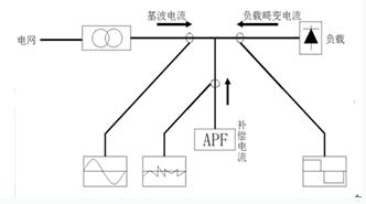 ANAPF有源濾波裝置的原理:以并聯(lián)方式接入電網(wǎng),通過實(shí)時(shí)監(jiān)測(cè)負(fù)載的諧波和無功分量,采用PWM變流技術(shù),從變流器中產(chǎn)生一個(gè)和當(dāng)前諧波分量和無功分量對(duì)應(yīng)的反向分量并實(shí)時(shí)注入電力系統(tǒng),從而實(shí)現(xiàn)諧波治理和無功補(bǔ)償。