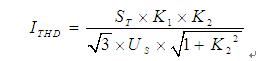 K1為負(fù)荷率:即負(fù)荷占變壓器額定容量的比例,通常取0.6~0.8,這里取0.6;K2為諧波系數(shù),集中補(bǔ)償場(chǎng)合適用于整體諧波污染不高但比較分散的場(chǎng)合,取12%;ST為變壓器額定容量,單位kVA;US為低壓系統(tǒng)電壓,一般取0.4.