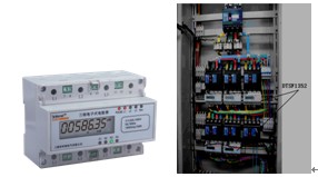 DDS1352單相電表,用于單相電能計量,DIN35mm導軌安裝,寬度為1個模數(shù)(即寬為18mm),一次最大接入單相電流30A,精度1.0級。優(yōu)點是尺寸小,價格低,缺點是沒有通訊功能,不能組網(wǎng)。