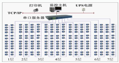 為滿足樓層和配電室統(tǒng)一監(jiān)控的要求,現(xiàn)場所有儀表通過屏蔽雙絞線連接至串口服務(wù)器,進(jìn)而實(shí)現(xiàn)對現(xiàn)場數(shù)據(jù)的采集,存儲(chǔ),處理,實(shí)時(shí)顯示以及歷史查詢,拓?fù)浣Y(jié)構(gòu)如圖1: