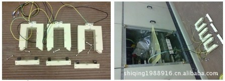 將繼電器或測量儀表與保護(hù)用開口電流互感器二次接好,確保電流互感器二次不能開路,將開口電流互感器上、下兩部分都打開,并注意電流互感器的P1面上、下兩部分一致,并將繼電器在現(xiàn)場安裝好,所有現(xiàn)場全部放置好,大電流一次母線穿銅排場合等待停電,如下圖所示: