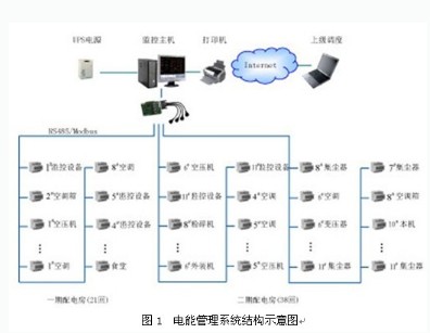某公司廠房共有一期配電房1個、二期配電房2個,提供全廠的生產(chǎn)、照明、空調(diào)用電及其它用電等。原有配電系統(tǒng)只在全廠總進線回路上裝有電力部門的電度表,管理者只能從每個月電力部門提供的用電總數(shù)值得知本月電量能耗,至于電能都用在了什么地方,有沒有電能浪費,節(jié)能措施有沒有收到應(yīng)有的效果,企業(yè)管理者不是很清楚。亟待一個合理的電能考核機制來實現(xiàn)電能的科學(xué)管理。