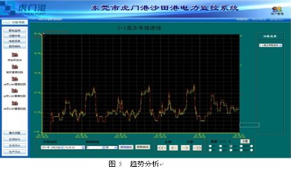 負(fù)荷趨勢曲線提供了某一段時(shí)間內(nèi)該回路的負(fù)荷趨勢,方便管理員掌握用電設(shè)備的運(yùn)行狀況,對存在故障隱患的設(shè)備及時(shí)提出整改,對不合理用電單位提出科學(xué)合理的改進(jìn)。如圖5所示: