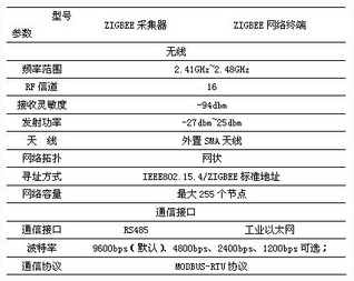 表1 ZigBee無線模塊的技術(shù)指標(biāo)