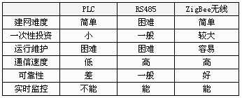目前,電能管理系統(tǒng)中運(yùn)用的另外一些通信方式如低壓電力線載波(PLC),RS485有線通訊都存在各種各樣的弊端。表1列出了ZigBee與其他通信技術(shù)的比較,從表1中可以看出ZigBee技術(shù)優(yōu)勢(shì)比較明顯。ZigBee技術(shù)是電能管理系統(tǒng)中一種非常理想的通信方式。它適用于一些短距離無(wú)線電能管理系統(tǒng)通信方式的實(shí)現(xiàn)手段,例如寫字樓、辦公樓、宿舍樓、工廠等無(wú)線電能管理系統(tǒng),尤其適用于一些布線困難舊樓改造的能耗管理系統(tǒng)中。