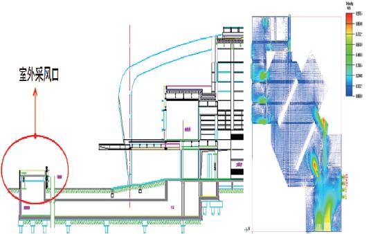 外窗直接通風(fēng),在過渡季節(jié)利用室外的采風(fēng)口、室內(nèi)地下層的自