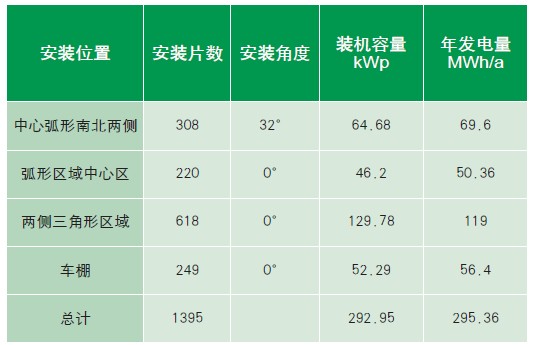 容量約303kWp,全年發(fā)電量約295.36MWh,原則上可滿足建筑