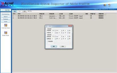 根據(jù)本系統(tǒng)的設(shè)計意圖,如果重要回路或者照明回路三相中某一相電流負(fù)荷超過額定值的90%,系統(tǒng)必須立刻發(fā)出聲光報警并彈出指示框指明報警源,提醒管理人員注意負(fù)載的三相平衡和負(fù)載率;根據(jù)現(xiàn)場技術(shù)人員要求,追求當(dāng)某一個低壓配電回路斷路器發(fā)生變位時,同樣發(fā)出聲光報警和彈出報警框指明報警源的功能。報警記錄存于數(shù)據(jù)庫中,保存3年,用戶可以通過查詢功能查看指定時間域內(nèi)發(fā)生的所有報警信息。