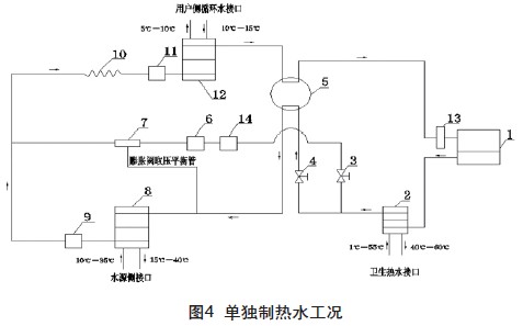 如圖3所示,冬季單獨(dú)供熱或同時(shí)供應(yīng)衛(wèi)生熱水時(shí)的工作原理