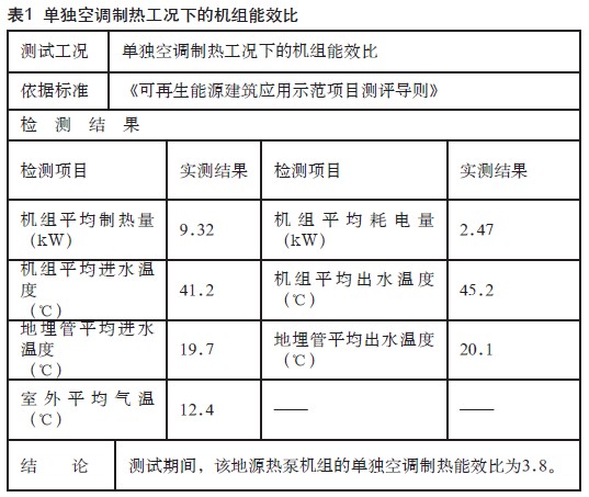 對(duì)本機(jī)組在不同工況下的能效比測(cè)試結(jié)果見(jiàn)下表: