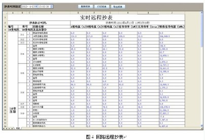 系統(tǒng)對(duì)所有采集到的數(shù)據(jù)都能實(shí)時(shí)的顯示,并保存到數(shù)據(jù)庫中,因此可以手動(dòng)查詢每個(gè)回路的所有實(shí)時(shí)及歷史電參量數(shù)據(jù),并以表格的形式展現(xiàn)給用戶,便于打印、保存。如圖4所示。