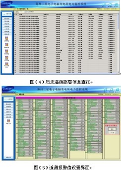 遙信和遙測報警功能,主要完成對低壓各出線回路的開關(guān)運行狀態(tài)和負載進線監(jiān)控,對開關(guān)變位和負載越限彈出報警界面指示具體的報警位置并聲音報警,提醒值班人員及時處理。遙測報警值設(shè)置界面可以看到每個監(jiān)控點的實時值和報警設(shè)置值,方便值班人員比對進線設(shè)置,負載越限值在相應(yīng)權(quán)限下可自由設(shè)置。具備歷史查詢功能。見圖(3)至圖(5)。