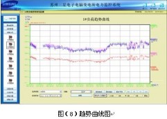 負荷趨勢曲線界面中可直觀的查看回路的負荷運行情況。查看實時和歷史趨勢曲線,點擊畫面相應(yīng)按鈕或菜單項可以完成相應(yīng)功能的切換;幫助用戶進線趨勢分析和故障追憶,具備曲線打印功能。為分析整個系統(tǒng)的運行狀況提供了直觀而方便的軟件支持。見圖(8)。