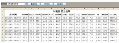 系統(tǒng)對所有采集到的數(shù)據(jù)都能實時的顯示,并保存到數(shù)據(jù)庫中,因此可以手動查詢每個回路的所有實時及歷史電參量數(shù)據(jù),并以表格的形式展現(xiàn)給用戶,便于打印、保存。如圖3所示。