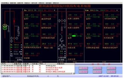 勝利油田物探研究院低壓配電系統(tǒng)主要有6臺(tái)10kv/0.4kv配電變壓器,本系統(tǒng)主要負(fù)責(zé)對(duì)低壓進(jìn)線(xiàn)及相應(yīng)配出回路的實(shí)時(shí)動(dòng)態(tài)監(jiān)控。