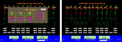 在6.6KV系統(tǒng)一次圖上,通過畫面顏色的變化(紅色表示合閘狀態(tài)、綠色表示分閘狀態(tài)、灰色表示手車分離狀態(tài))可以看到現(xiàn)場(chǎng)斷路器運(yùn)行狀態(tài)、手車位置、接地刀閘狀態(tài)、彈簧儲(chǔ)能狀態(tài)等。