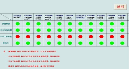 顯示高壓各回路遙信狀態(tài),通過畫面顏色的變化(紅色表示合閘狀態(tài)、綠色表示分閘狀態(tài)、灰色表示手車分離狀態(tài))可以看到現(xiàn)場(chǎng)斷路器運(yùn)行狀態(tài)、手車位置、接地刀閘狀態(tài)、彈簧儲(chǔ)能狀態(tài)等。