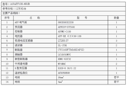 ANAPF有源濾波器報價及主要元件清單