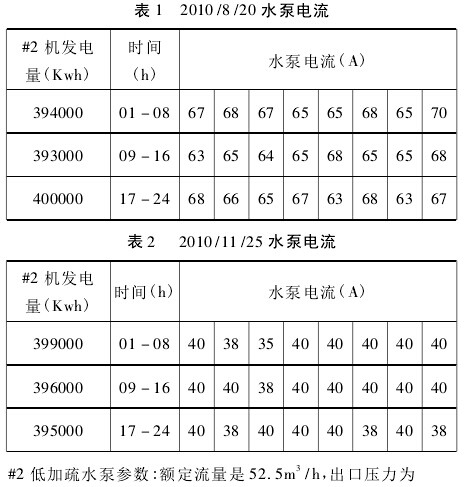 下面根據(jù)某廠#2 低加疏水泵在2010 年9 月實現(xiàn)的變頻改造,分別取變頻改造前后數(shù)據(jù)進(jìn)行分析,以說明變頻器在工業(yè)節(jié)能降耗中的作用,如表1 和表2。