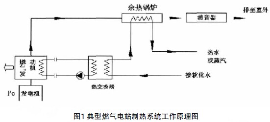往復(fù)式內(nèi)燃機(jī)組發(fā)電系統(tǒng)主要是利用往復(fù)式內(nèi)燃機(jī)拖動(dòng)發(fā)電機(jī)發(fā)電,匹配余熱鍋爐構(gòu)成燃?xì)怆娬?,?shí)現(xiàn)制熱、制冷的廢氣利用技術(shù)??傮w上可分為燃?xì)怆娬局茻釓U氣利用系統(tǒng)和燃?xì)怆娬局评鋸U氣利用系統(tǒng)。