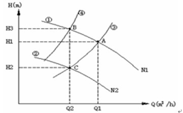輸出壓力H與轉速n2成正比:H1/H2=(n1/n2)2 ……(2)
