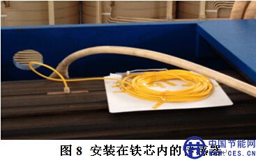 傳感器在繞組、鐵芯、母線排及頂層油的安裝如圖7-10所示: