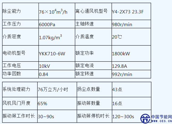 1、除塵系統(tǒng)主要設(shè)備參數(shù)