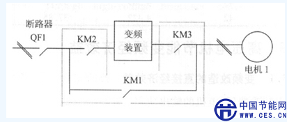 變頻器只能同時(shí)為1臺(tái)電機(jī)供電。如:電機(jī)1處于變頻工作狀態(tài)時(shí),KM2、KM3與KM1應(yīng)相互鎖住,這樣可有效防止操作失誤;同樣,電機(jī)2處于變頻工作狀態(tài)時(shí),KM5、KM6與KM4應(yīng)相互鎖住,這樣可有效防止操作失誤;KM2與KM5、KM3與KM6之間具有電氣互鎖,可有效防止操作失誤;在同一時(shí)間內(nèi),KM2只能與KM3或者KM1閉合工作,可以通過電氣互鎖,實(shí)現(xiàn)誤操作防止。三套設(shè)備均使用變頻一拖一拖動(dòng)方式,不帶旁路,也不需增加任何高壓電氣控制相關(guān)設(shè)備,但其安全性能較低,不宜采用。