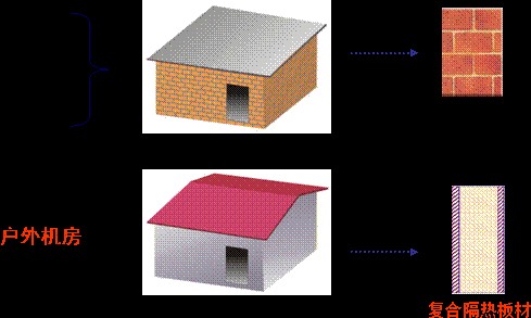 另外一種方式為借鑒海外發(fā)達(dá)國家的成熟經(jīng)驗(yàn),采用新型隔熱防火的建筑材料建設(shè)的通信戶外機(jī)房。這種方式建站迅速,成本低,使用方便,并根據(jù)中國的使用現(xiàn)狀頒布通信機(jī)房的行業(yè)標(biāo)準(zhǔn)。此種新結(jié)構(gòu)機(jī)房在行業(yè)內(nèi)已經(jīng)得到普遍認(rèn)可,發(fā)展很迅速。