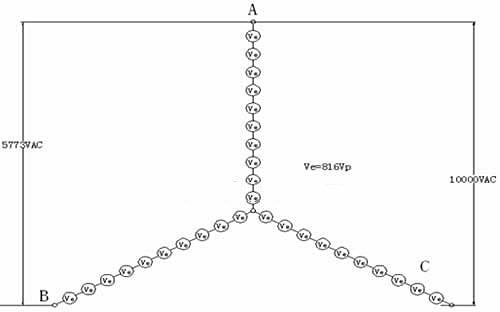 單元串聯(lián)多電平變頻器采用若干個(gè)獨(dú)立的低壓功率單元串聯(lián)的方式來實(shí)現(xiàn)高壓輸出其原理如圖3.3所示