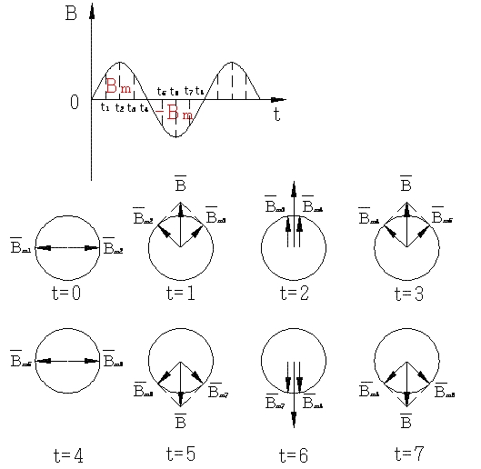 | 一個脈動磁場可以分解為兩個幅值相等、速度相同、旋轉(zhuǎn)方向相反的兩個磁場. |