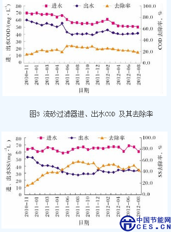 流砂過濾器作為低鹽系列污水的深度處理工藝,對污水中的COD 和SS 均具有較好的去除效果。工業(yè)應(yīng)用結(jié)果表明,經(jīng)流砂過濾器處理后出水COD 均小于50 mg/L,達到國家排放標準。流砂過濾器具有占地省、操作管理較簡便、處理效果穩(wěn)定等特點,是污水達標排放的重要環(huán)節(jié)。