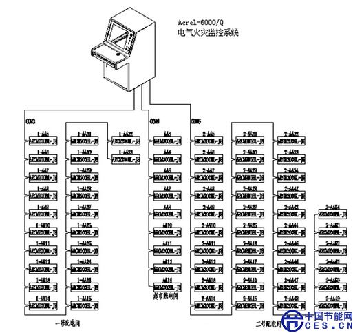 為了監(jiān)控整個配電系統(tǒng)是否存在電氣火災(zāi)隱患,現(xiàn)須根據(jù)本項目的情況設(shè)計一套電氣火災(zāi)監(jiān)控系統(tǒng)。電氣火災(zāi)監(jiān)控系統(tǒng)須實時監(jiān)測重要回路的剩余電流值、箱體回路的實時溫度,監(jiān)測的數(shù)據(jù)實時傳輸至后臺主機,當(dāng)發(fā)生剩余電流值越限、溫度越限時,后臺能進行聲光報警,同時后臺能夠和消防火災(zāi)報警系統(tǒng)實現(xiàn)消防聯(lián)動。