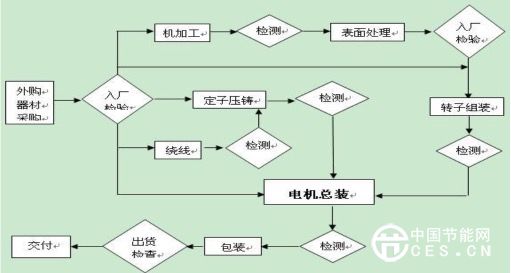 圖1 稀土永磁無鐵芯電機(jī)生產(chǎn)流程圖