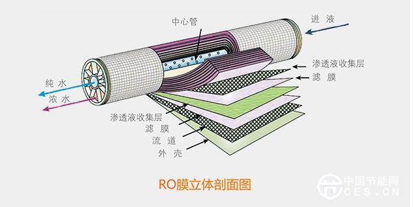 反滲透技術又稱RO膜技術,最早應用在太空宇航領域,一般水的流動方式是由低濃度流向高濃度,水一旦加壓后,將由高濃度流向低濃度,亦即所謂逆滲透原理,由于RO膜的孔徑是頭發(fā)絲的一百萬分之一(0.0001微米),一般肉眼無法看到,而細菌、病毒等對人體有害的物質(zhì)的直徑是它的5000倍,因此,RO膜技術可將水中的重金屬、農(nóng)藥、細菌、病毒、余氯等雜質(zhì)徹底濾除,而且反滲透膜并不分離溶解氧,因此產(chǎn)出的水是活水,在目前來說反滲透技術是最安全、最可靠的高科技水處理技術。