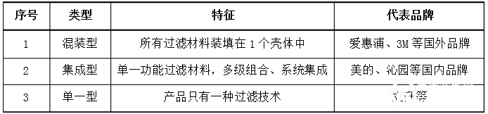 現(xiàn)階段家用凈水機的技術(shù)類別: 序號 類型 特征