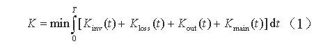 式中:Kinv為規(guī)劃期年的投資費(fèi)用;Kloss為規(guī)劃期年的損耗費(fèi)用;Kout為規(guī)劃期T年的停電損失費(fèi)用;Kmain為規(guī)劃期年的維護(hù)費(fèi)用;T為規(guī)劃期年限。