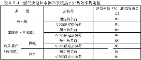 6.2.4當設(shè)計采用戶式燃氣采暖熱水爐作為采暖熱源時,其熱效率應(yīng)不小于表6.2.4的規(guī)定值。