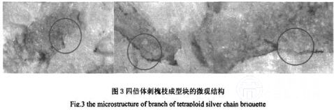 北京林業(yè)大學(xué)回彩娟碩士,借鑒德國(guó)的Rumpf提出的粉粒體成型的有關(guān)理論,選用體視顯微鏡對(duì)成型塊進(jìn)行觀察,發(fā)現(xiàn)常溫致密成型過(guò)程中,生物質(zhì)原料顆粒由于受到高壓作用而互相鑲嵌在一起,顆粒間的結(jié)合力主要來(lái)自相互間的機(jī)械鑲嵌。四倍體刺槐枝成型塊的微觀結(jié)構(gòu)如圖3,從左至右依次是10MPa、30Mpa和60Mpa壓力下的成型塊微觀結(jié)構(gòu)圖。