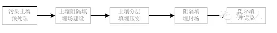 對于高風(fēng)險(xiǎn)污染土壤可以聯(lián)合固化/穩(wěn)定化技術(shù)使用后,對污染土壤進(jìn)行填埋;對于低風(fēng)險(xiǎn)污染土壤可直接填埋在阻隔防滲的填埋場內(nèi)或原位阻隔覆蓋。該技術(shù)一方面可以隔絕土壤中污染物向周邊環(huán)境遷移,另一方面可使其污染物在阻隔區(qū)域內(nèi)自然降解。