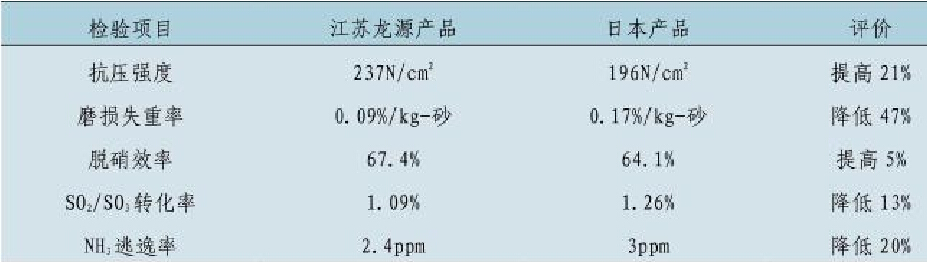 國(guó)產(chǎn)脫硝催化劑與進(jìn)口產(chǎn)品主要性能指標(biāo)的對(duì)比
