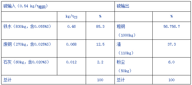 BOF脫硫——盡管堿性渣可用于精煉,但是由于處在氧化條件下,ηS相當?shù)?20-50%)。表2給出工藝過程中硫平衡,可以看出硫的輸入是鐵水、廢鋼和石灰,硫的輸出分為鋼水、爐渣和粉塵,其中初始硫含量中的56%保留在鐵水中。提高BOF脫硫效率的可能性相當有限。最有效的措施是在生產(chǎn)低硫要求的鋼種時,使用經(jīng)過專門挑選和存放的廢鋼,從而限制廢鋼帶入的硫量。必需指出的是,通常在鐵水深脫硫情況下,由于廢鋼和石灰中的硫含量過高以及鐵水脫硫渣排渣不當而導致回硫,甚至面臨增硫的難題,見圖2。