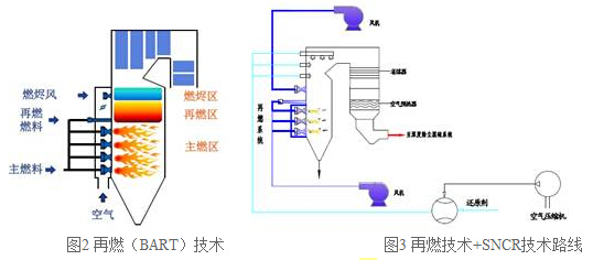 (1)再燃技術(shù)+SNCR技術(shù)路線(如圖3所示)