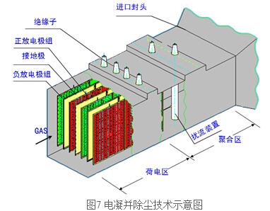 含塵氣體進入除塵器前,對其進行分列荷電處理,使不同粒徑粉塵有效凝聚,形成大顆粒后進入除塵器;減少煙塵總質(zhì)量排放,有效提高ESP除塵效率;顯著減少PM2.5的排放,對PM2.5的捕集效率30~80%;并且有助于減少汞、砷等有毒元素的排放[5]。局限性為凝聚器的安裝需要一定長度的進口煙道,故其使用受到一定限制;提效又受除塵設(shè)備出口排放和粉塵粒徑影響,且其提效具有一定范圍,不適用收集磨琢性強的粉塵。在國內(nèi)中電投上海吳涇熱電廠300MW機組、江陰蘇龍熱電135MW機組等取得了應(yīng)用。